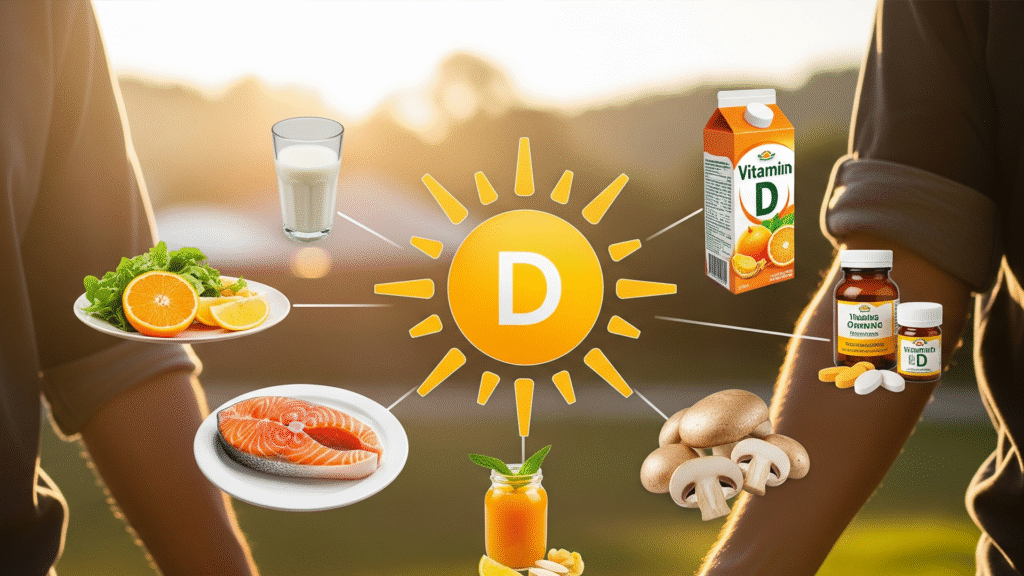 ☀️ धूप, संतुलित डाइट और डॉक्टर की सलाह के अनुसार सप्लीमेंट्स — ये सभी विटामिन D का अच्छा स्रोत हैं।